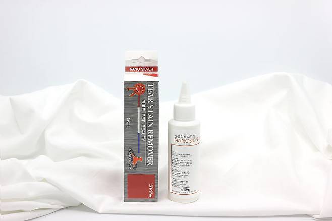 회사에 새로운 눈물 얼룩 지우개가 들어왔군요. '티어스테인 리무버'는 독일 화학&제약 기업인 바이엘사의 원료를 사용한 눈물 얼룩 리무버입니다. 포장지에 ‘Nano Silver’라고 써있는 걸 보니 향균 효과도 있나보군요. 제가 나설 차례입니다. 바로 실험에 착수했습죠.