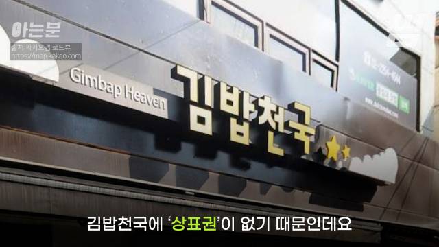 김밥천국의 간판이 다 다른 이유는 '김밥천국'에 상표권이 없기 때문입니다.