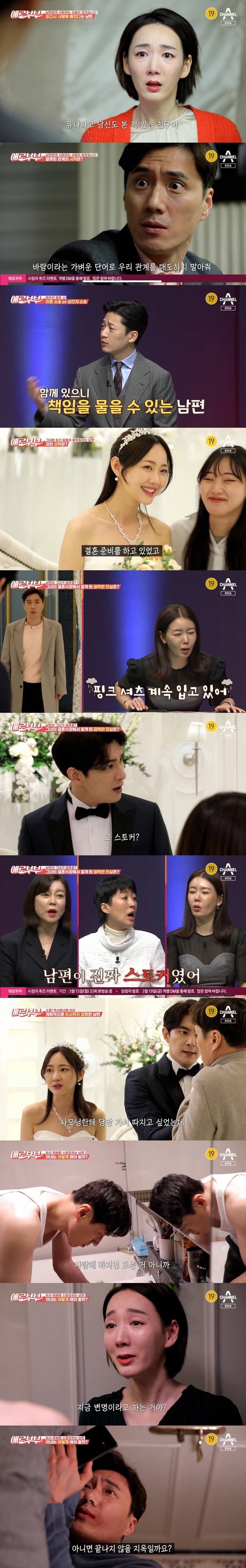 알고 보니 남편은 후배를 스토킹하고 있었고, 상상으로 상간녀와 사랑에 빠졌던 것. 심지어 남편은 후배 여직원이 이사 온다는 사실을 알고 먼저 이사를 왔다고. 이 모든 사실이 발각된 후에도 남편은 자신의 감정에 솔직했다고 말해 충격을 안겼다. 이게 끝이 아니었다. 남편은 후배의 고향 집까지 찾아가 원치 않는 결혼을 한다는 이상한 소리로 후배를 괴롭혔다. 후배가 그만하라고 사정했지만, 남편은 여전히 정신을 차리지 못했다.