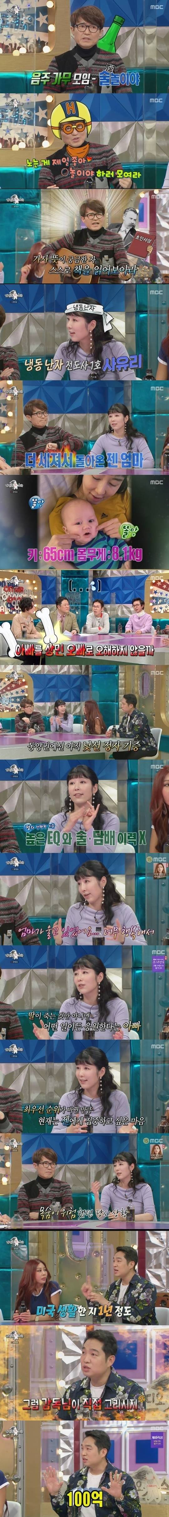 ‘냉동 난자’ 전도사 1호로 활약했던 일본 출신 방송인 사유리는 정자를 기증받아 지난해 11월 아들 젠을 출산, 자발적 미혼모가 됐다. 사유리는 “현재 젠이 태어난 지 120일 됐다. 키는 65cm, 몸무게는 8.1kg이 됐다. 하루에 응가를 4번 한다”고 밝혔다. 김구라가 “필터링 없는 입담이 여전하더라”고 하자 사유리는 “달라진 게 있다. 몸매다. 엉덩이가 예전엔 위에 있었다면 지금은 밑으로 내려갔다”고 털어놔 웃음을 안겼다. 사유리는 “아줌마가 되니까 무서울 게 없다. 특히 미래 시어머니가 없다. 시댁이 없으니까 내가 아무리 지랄해도 괜찮다”고 입담을 뽐냈다.