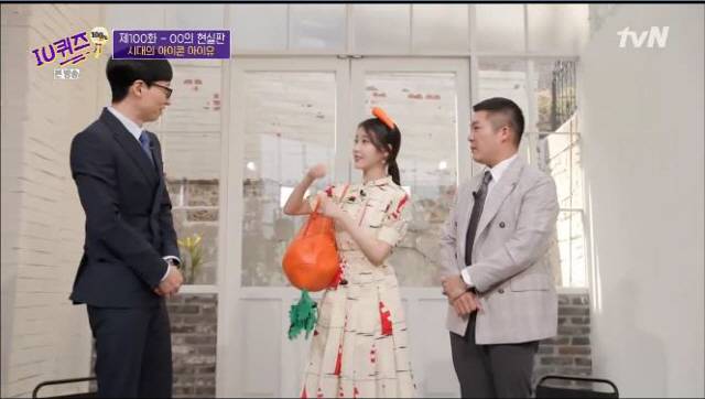 퀴즈를 틀린 아이유는 '당근 선물'에 기뻐하며 바로 머리띠와 가방을 멨다.