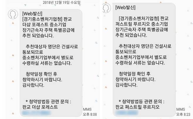 하지만 특별공급의 종류는 그게 전부가 아닙니다. 특별공급 중에서도 ‘중소기업 특별공급’으로 무려 같은 날 두 개의 당첨 문자를 받은 사례를 소개합니다.