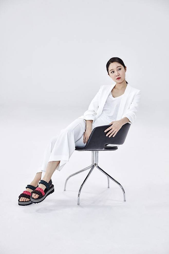 공효진은 화이트 재킷에 와이드 팬츠와 티셔츠로 산뜻한 느낌의 오피스룩을 연출했으며 비비드한 색감의 플랫폼 샌들로 세련된 스타일링을 선보였다.