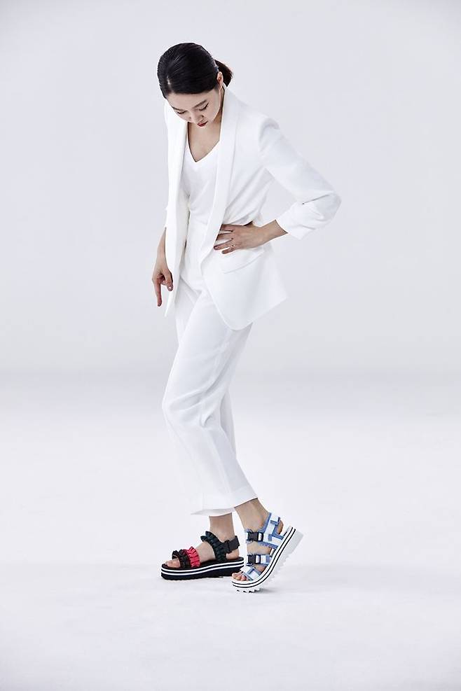 그녀가 매치한 신발은 「슈콤마보니」의 ‘캉캉(Cancan)샌들’로 트렌디한 디자인에 스포티한 분위기가 어우러져 편안하면서도 스타일리시한 연출을 선보일 수 있다.