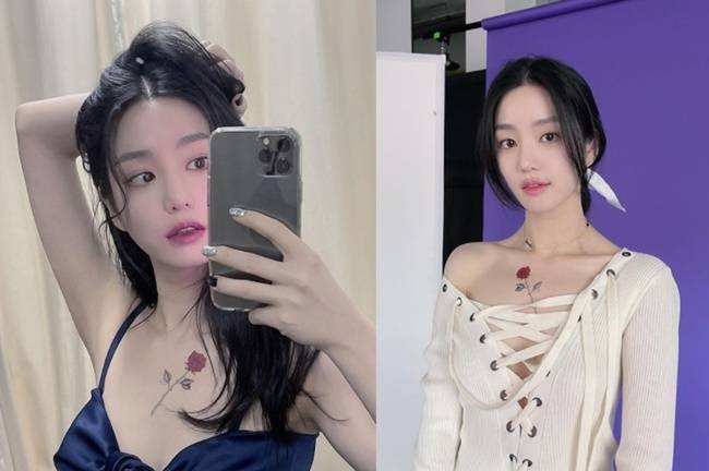 사진 속 이유비는 쇄골 아래 부분에 커다란 장미 타투를 뽐내며 거울 셀카를 찍고 있다. 특히 커다란 눈망울과 우윳빛깔 피부를 뽐내고 있는 이유비는 엄마 견미리 못지 않은 미모를 뽐내고 있어 눈길을 끌었다.