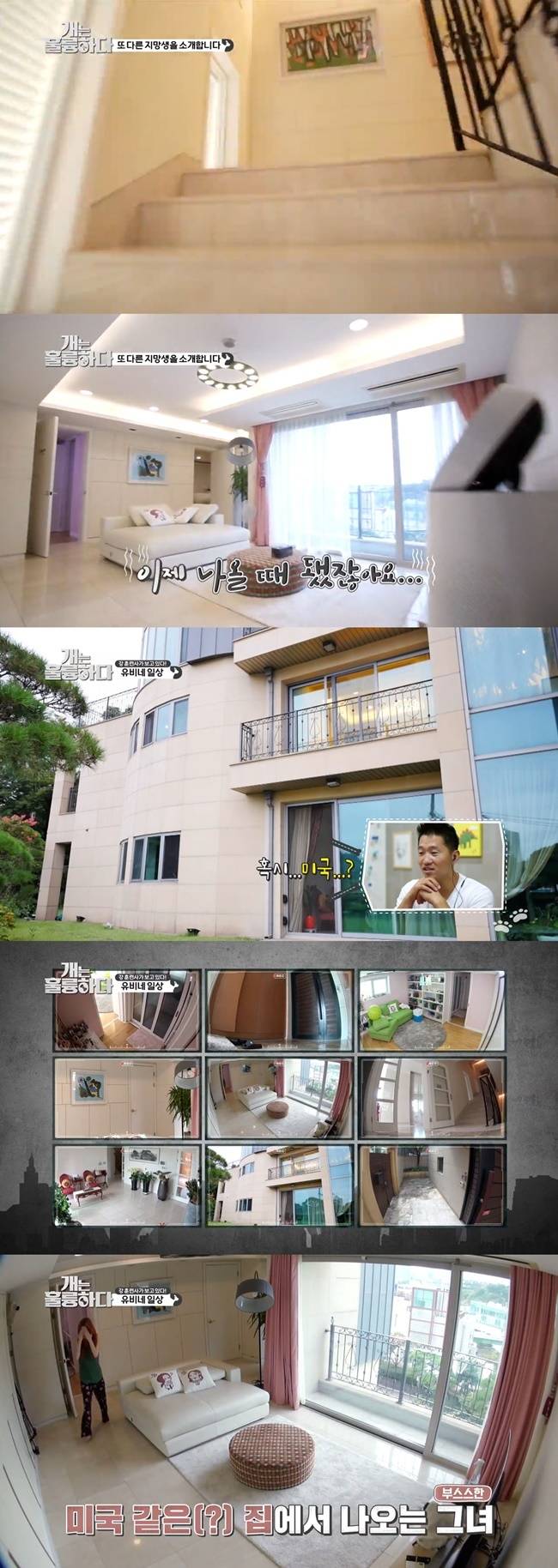 이어 이유비가 반려견을 부르는 목소리가 들렸고 이에 제작진은 재빠르게 카메라를 돌리며 주인공을 찾았으나 넓은 자택 규모에 길을 잃은 '웃픈' 상황이 벌어지기도 했다. 제작진의 시선을 따라 계단을 올라가자 이번엔 화이트 톤의 대리석 거실이 펼쳐졌다. 위층 거실은 아래층과 다르게 우드톤이 아닌 화이트에 집중됐으며 친환경적으로 곳곳에 화분이 놓여 있었다. 또한 연결된 테라스로 나가자 반려견들이 뛰어놀기에 충분한 잔디정원은 물론, 한 편에 연못까지 배치돼 고급스러움을 강조했다.