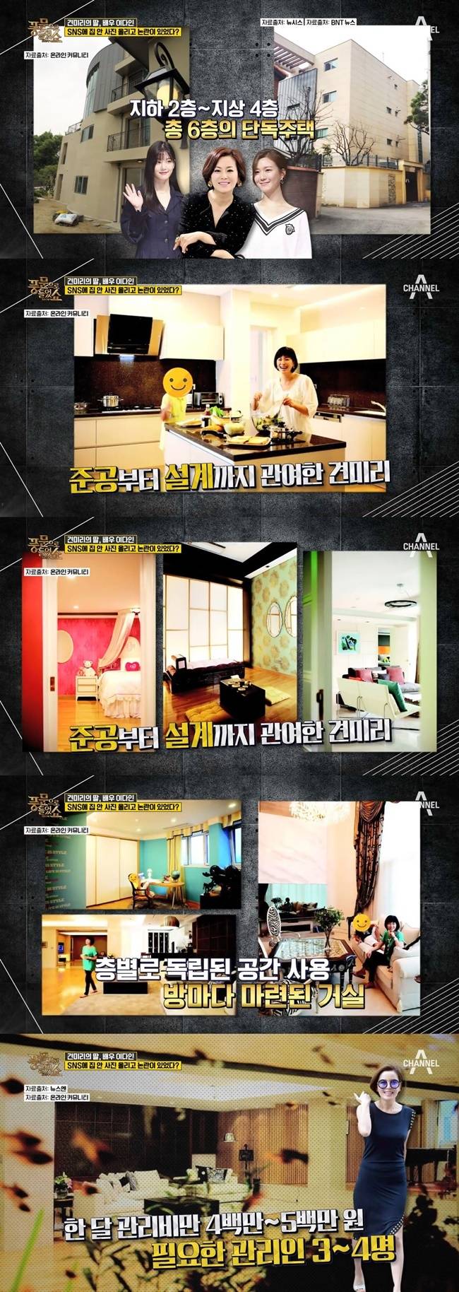 앞서 이들의 자택은 지난 2018년 채널A '풍문으로 들었쇼'를 통해 소개된 바 있다. 당시 견미리 모녀의 자택에 대해 출연진은 "한남동에 위치한 견미리 자택은 지하 2층부터 지상 4층까지 총 6층의 단독주택으로 구성돼 있다"며 "견미리 씨가 준공부터 설계까지 관여했고 층마다 개인 공간이 있고 방에는 거실이 따로 있다"고 설명했다. 또한 "견미리 자택 시세는 90억 원(방송 날짜 2018년 기준)이다. 한 달 관리비만 4~5백만 원가량이며 필요한 관리인도 3, 4명인 큰 집"이라고 덧붙여 화제를 모았다.
