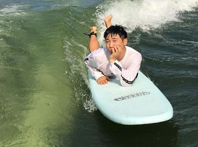유세윤은 2015년 부산국제서핑대회 예선전에 출전했을 정도의 실력자다.