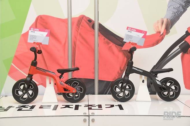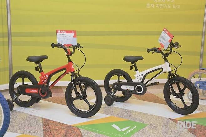 아이들이 좋아할 만한 캐릭터가 그려진 자전거도 있다. 남자아이를 위한 또봇은 리어쇽과 더블크라운 서스펜션 포크가 특징이다. 16인치와 18인치 두 가지 휠 사이즈가 있어서 아이의 연령대와 신장에 따라 선택할 수 있다. 전시된 샘플은 스프링이 다소 강한 편이었으나 시판될 모델은 아이들의 체중에 맞게 스프링 강도를 조절할 계획이다.