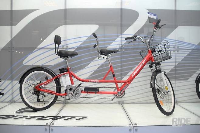 E-탠덤은 이름 그대로 2인승 전기자전거다. 관광지나 공원에서의 대여 목적으로 만들어졌고, 대용량 배터리를 적용했다. 뒤쪽 안장 뒤에는 등받이가 달려서 편한 자세로 앉아 있을 수 있고, 앞쪽엔 바구니가 달렸다. 바구니에는 안전을 위해 자전거와 함께 빌려줄 헬멧을 넣어 놓아도 좋을 듯하다.