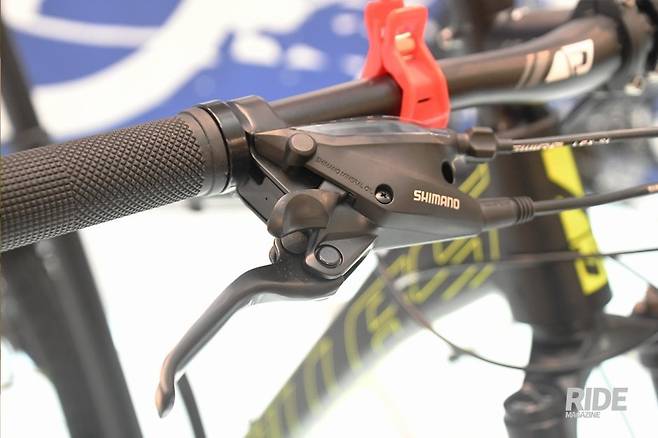 한 단계 위 버전인 칼라스 30은 시마노 24단 기어가 장착돼 있다. 칼라스 20이 16, 17.5 두 가지 사이즈인 반면 칼라스 30에는 14.5 사이즈가 추가됐다. 당연하게도 유압 디스크브레이크가 달려 있는데, 브레이크 레버는 시마노 알투스 ST-EF505로 변속레버와 일체형이다.