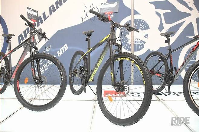 도전의 상징인 MTB는 아팔란치아 칼라스 라인업이 대표한다. 최상위 모델인 칼라스 카본은 카본 프레임과 시마노 데오레 30단 구동계로 구성돼 있다. 완성차 가격이 92만 원으로, 거의 모든 다른 브랜드의 카본 프레임 가격보다도 저렴하다. 칼라스 카본 외에도 알루미늄 프레임과 다양한 부품으로 구성된 여러 제품이 있다.