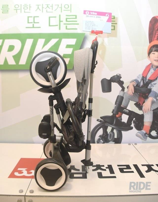 샘트라이크 콤팩트는 유모차 겸용 세발자전거 중에서도 작게 접혀서 자동차 트렁크에 넣기 좋은 제품이다. 일반 유모차는 접었을 때 눕혀 놔야 하는 경우가 많은데, 다시 아이를 태우려면 바닥에서 묻은 흙을 터는 등의 수고가 필요하다. 샘트라이크 콤팩트는 접었을 때도 스스로 잘 서기 때문에 그런 수고를 덜 수 있다.