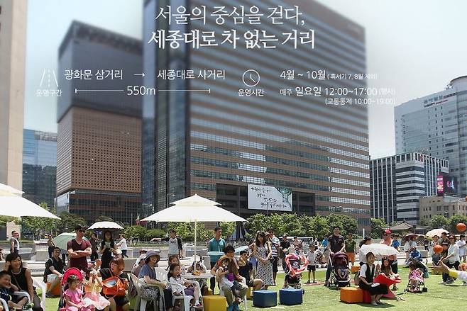 세종대로 차 없는 거리는 6월까지 매주 일요일 운영 후 혹서기를 피해 9월에 다시 시작한다.