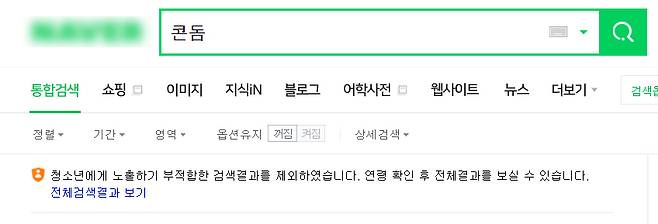 포털사이트에 ‘콘돔’을 검색했을 때에도 ‘청소년에게 부적합한 검색결과를 제외했다’며 콘돔 구매 관련 정보가 차단돼 있었다.