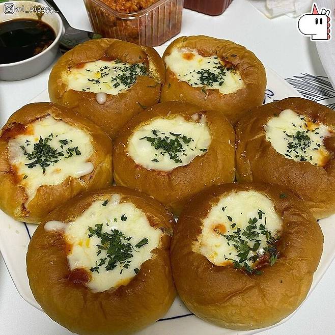 5. 전자레인지 3분 or 에프 2분이면 모닝빵 피자 완성!