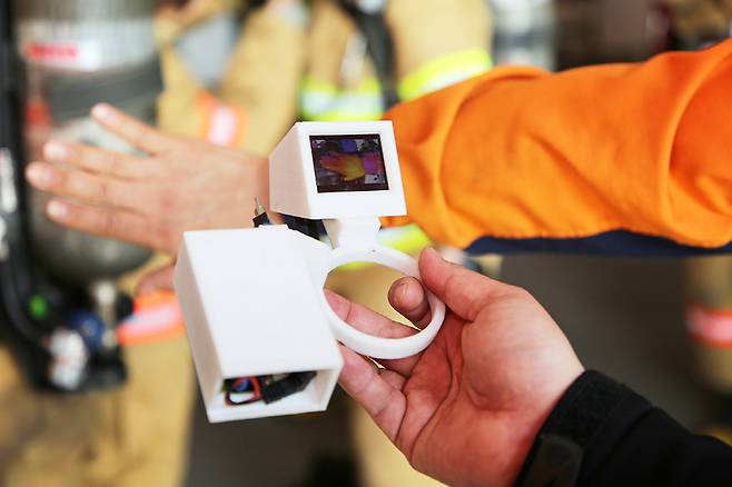 기존 열화상 카메라는 크고 무거워 소방대원들이 현장에서 사용하기에 어려움이 많았습니다. 구조할 때 방해가 되지 않게 최대한 가벼우면서도 양손을 자유롭게 할 수 있는 장비가 필요했죠.
