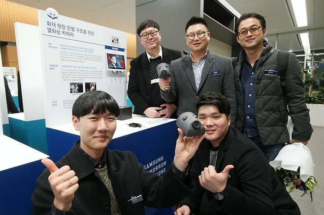 이 열화상 카메라는 한경승 소방관이 실제 화재 진압 현장에서 겪었던 문제를 해결하기 위해 고민하다 나온 아이디어였습니다. 경승씨와 한국산업기술대학교에 재학 중인 학생 세 명은 함께 팀을 이뤄 삼성의 사회공헌 공모전에 나갔고 이 아이디어가 채택되면서 개발할 수 있었습니다.