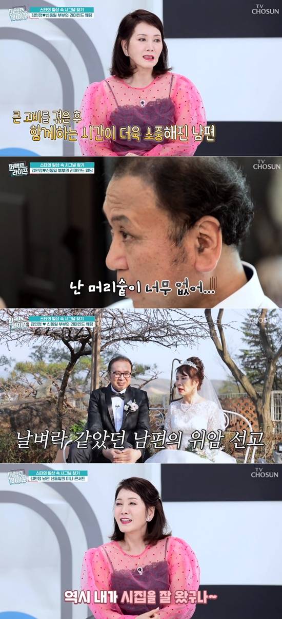 5일 방송된 TV조선 '퍼펙트 라이프'에는 데뷔 53년차 배우 김민정이 출연해 남편과 일상을 공개했다.