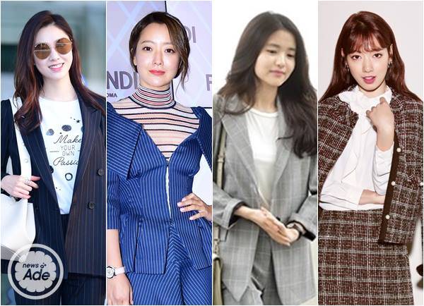깔끔한 디자인을 선호한다면 손담비가 선보인 회색 투피스도 주목해보길. 각 잡힌 복고풍의 어깨선이 트렌드다.