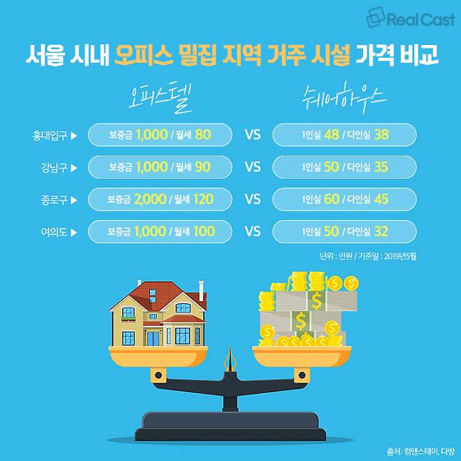 기본 자금이 넉넉지 않은 사회초년생에게 선택은 크게 두 가지로 나뉩니다. 쉐어하우스와 오피스텔. 요즘 첫 집으로 가장 많이 선호하는 주거유형이죠. 그런데 이 둘은 뭐가 다른 것일까요? 그리고 이 중 어떤 공간이 사회초년생의 안락한 쉼터가 돼 줄 수 있을까요?