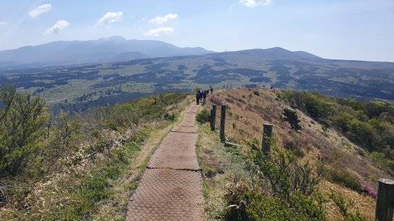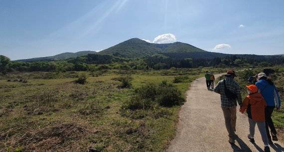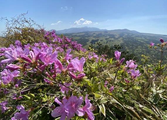 노꼬메오름 정상에 서면 한라산과 크고 작은 오름 그리고 짙푸른 바다 등 제주도의 풍경이 파노라마처럼 펼쳐집니다.
