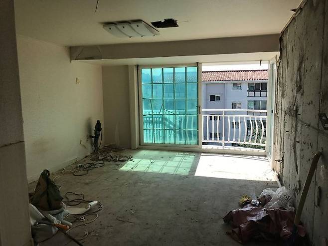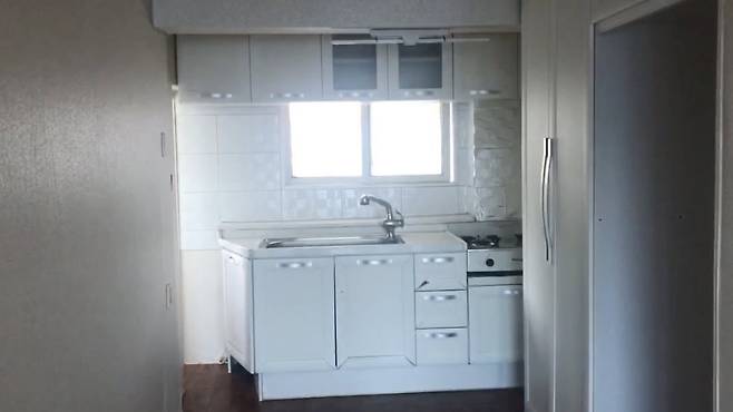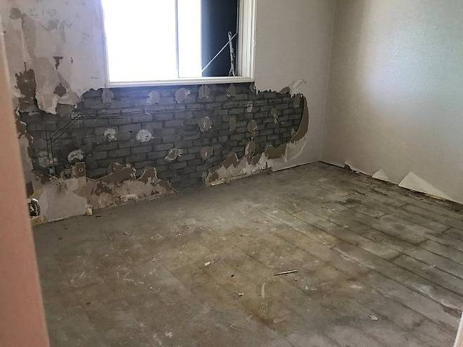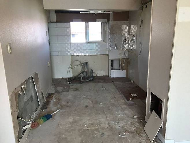 싱크대와 장을 철거하니 답답해 보였던 주방이 조금은 나아졌어요. 충격과 공포의 비포 사진이네요!