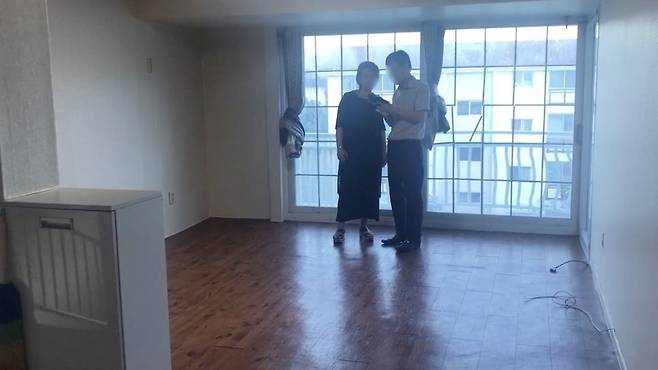 엘리베이터 없는 5층 빌라의 꼭대기 층에서 살고 있으며 18평이에요.