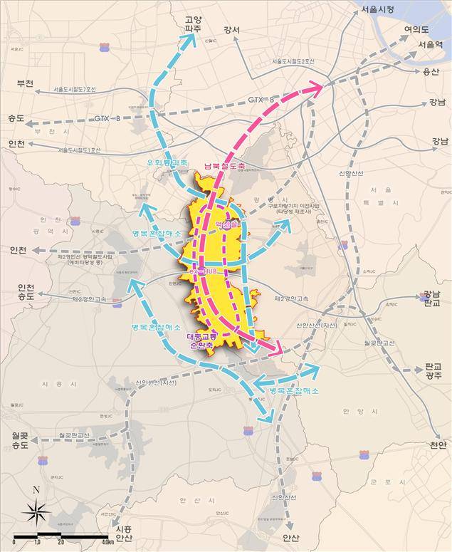 여의도 면적의 4.3배에 달하는 1271만㎡ 규모를 서남권 거점도시로 개발한다. 3기 신도시 중 최대 규모로 1·2기 신도시를 통 틀어도 동탄2, 분당, 파주운정, 일산, 고덕국제화에 이어 6번째로 규모가 크다.