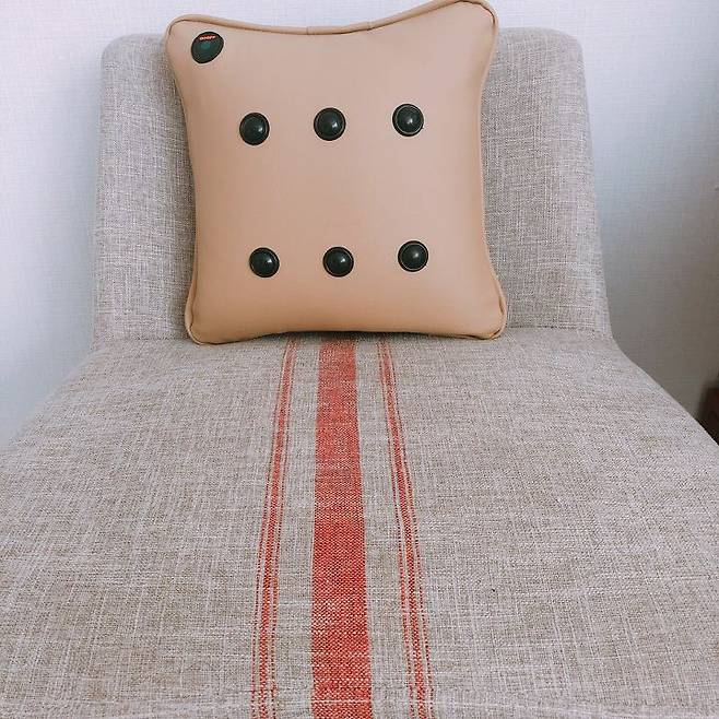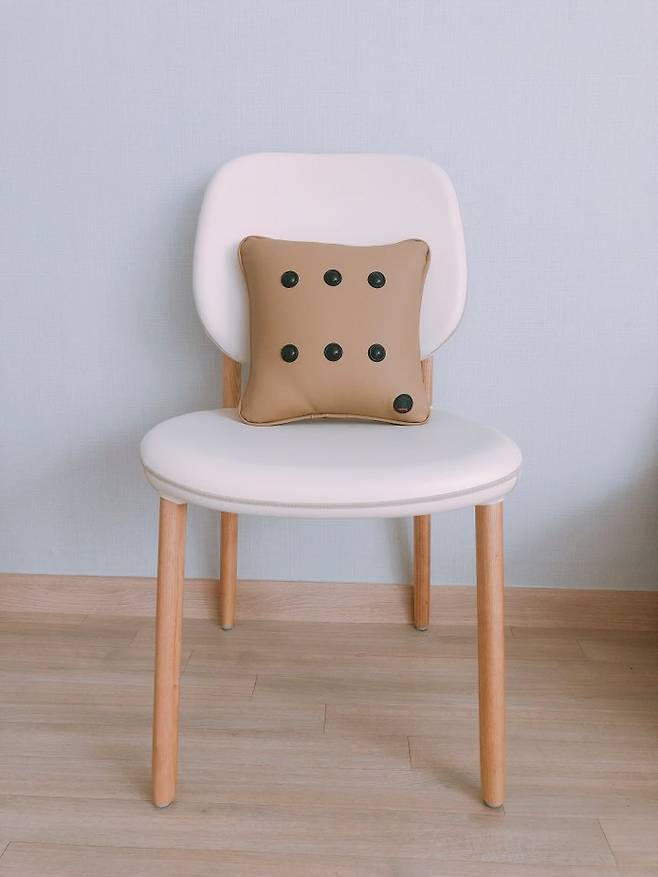 쿠션은 부드러운 가죽 재질이에요. 소재만 다를 뿐 집 안의 흔한 쿠션과 다르지 않아요. 크기는 조금 작지만요.