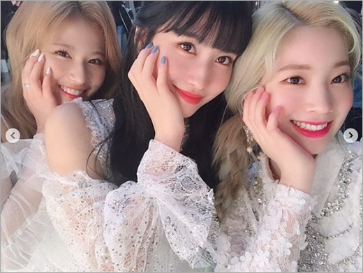 또 다른 사진에서 사나 모모 다현은 가위 포즈로 턱을 괴고 서로 다른 표정으로 각양각색의 매력을 뽐내고 있습니다.