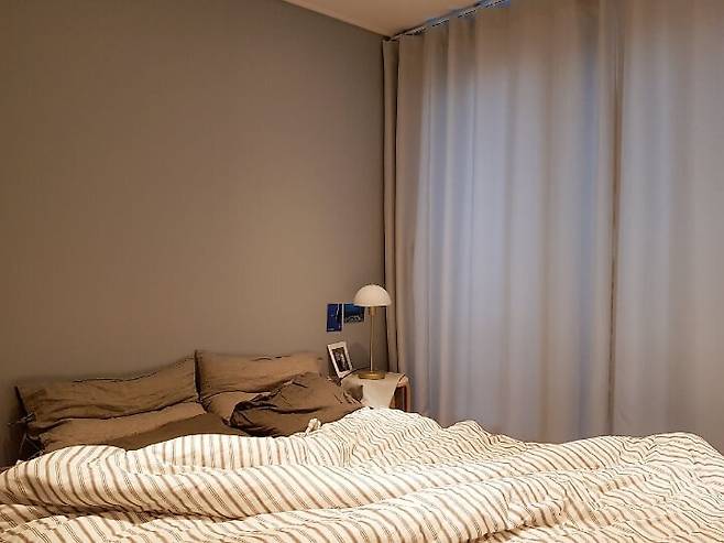 침실은 집에 들어오자마자 오른쪽에 위치해 있어요. 정말 잠만 자는 목적으로 최소한의 가구만 두었죠.