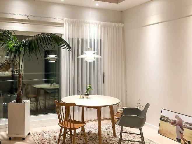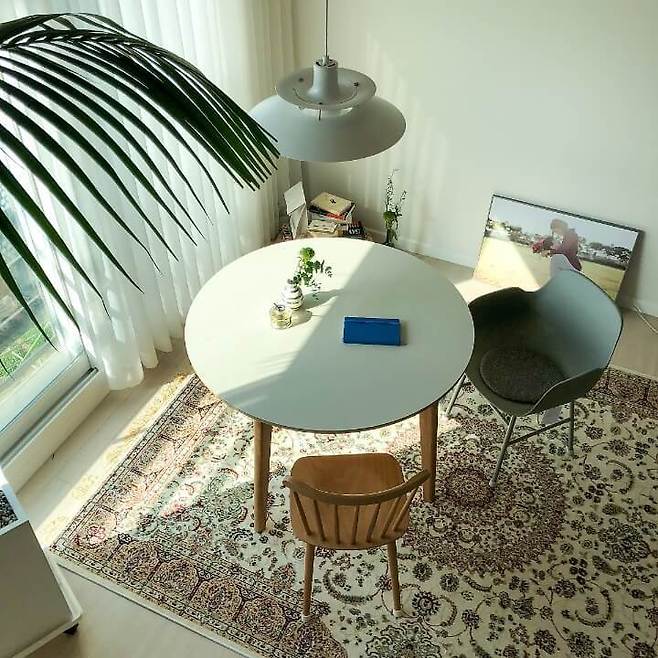 한국 집들의 비슷비슷한 직사각형의 테이블 대신 원형테이블을 두었어요. 동그랗게 둘러앉아 식사를 하거나 차를 마시는 모습들이 참 좋아 보이더라고요.