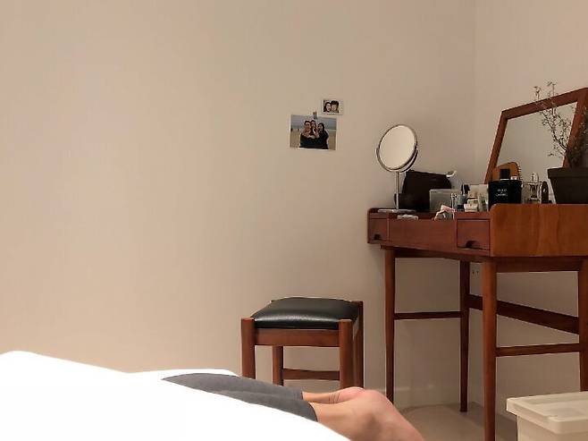 한 쪽 귀퉁이에는 화장대를 두었어요. 잠만 자는 목적이지만 제 피부는 소중하니까요. :-)