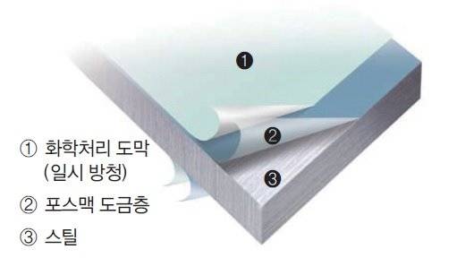 포스코의 고내식 합금 도금 강판인 포스맥PosMAC®이 스틸하우스에 적용되고 있다. 포스맥이 부식에 강한 이유는 무엇일까. 철의 부식을 막기 위해 적용되는 아연 도금 강재는 도금층인 아연이 부식돼 소모될 때 철이 녹스는 것을 대신 막아주는 방식이 적용된 강판이다. 특히 아연층이 부식돼 소모되는 속도는 공기 중 염분 함량이 높은 도서島嶼 해안지역, 그리고 화학적 부식이 우려되는 산업 지역 및 농축산 지역 등 환경적 요인에 따라 빠르게 진행된다. 포스코에서 기존 제품과 차원이 다른 철을 만든 이유다. 바로 마그네슘(Mg), 아연(Zn), 알루미늄(Al) 세 가지 원소를 합금한 도금으로 장기간 안심하고 사용할 수 있게 만든 것이 포스맥이다.