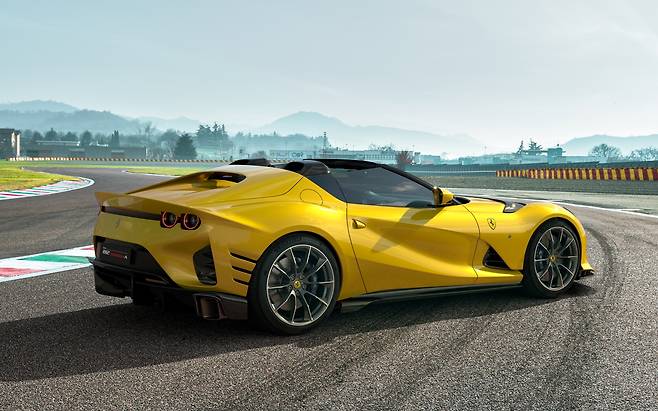 보닛 아래에는 V12 6.5L 가솔린 자연흡기 엔진이 자리했다. 812 슈퍼패스트와 같은 엔진인데, 출력은 30마력 올라 최고출력 830마력을 뿜는다. 이를 위해 커넥팅 로드와 피스톤, 크랭크축 등 엔진 핵심 부품을 재설계했다. 철보다 40% 가벼운 티타늄으로 커넥팅 로드를 만들고, 피스톤 핀은 DLC(Diamond-like carbon) 코팅 처리해 마찰계수를 줄였다. 크랭크축도 3% 더 가볍다.