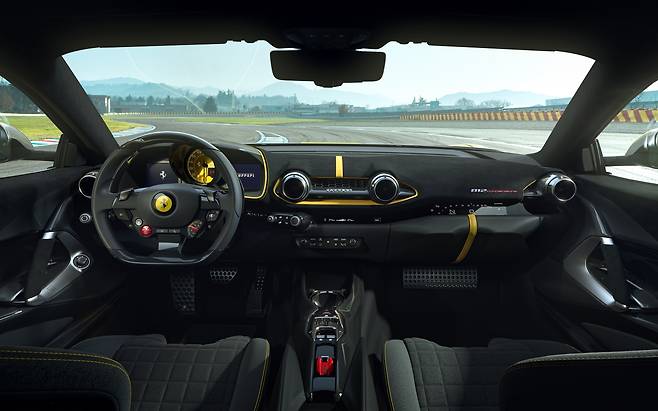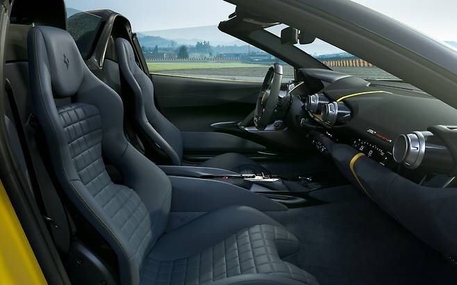 실내 디자인은 기존 모델과 크게 다르지 않다. 변속 버튼 형상을 바꿨는데, 로마를 통해 처음 선보였던 ‘기어-게이트 테마’를 적용했다. 수동변속기의 ‘H’자를 연상시켜 페라리의 과거와 미래를 잇는 연결고리 역할을 맡는다.