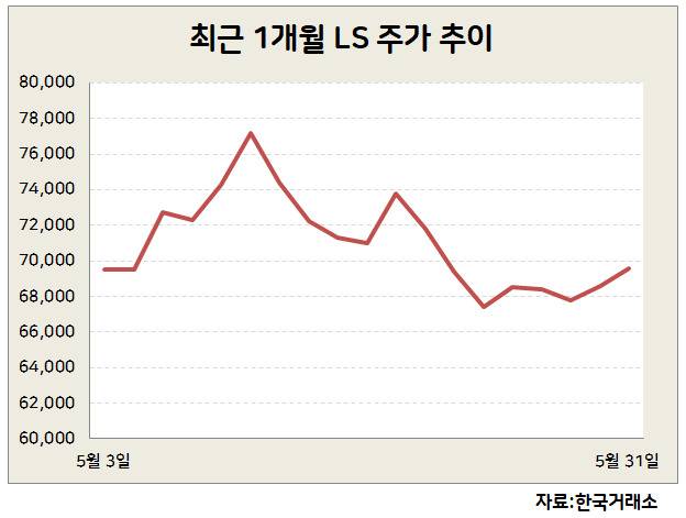 1일 금융투자업계에 따르면 전선업종 1위 LS전선의 모회사인 LS 주가는 지난해 연말부터 7만원 내외에서 횡보하고 있다.