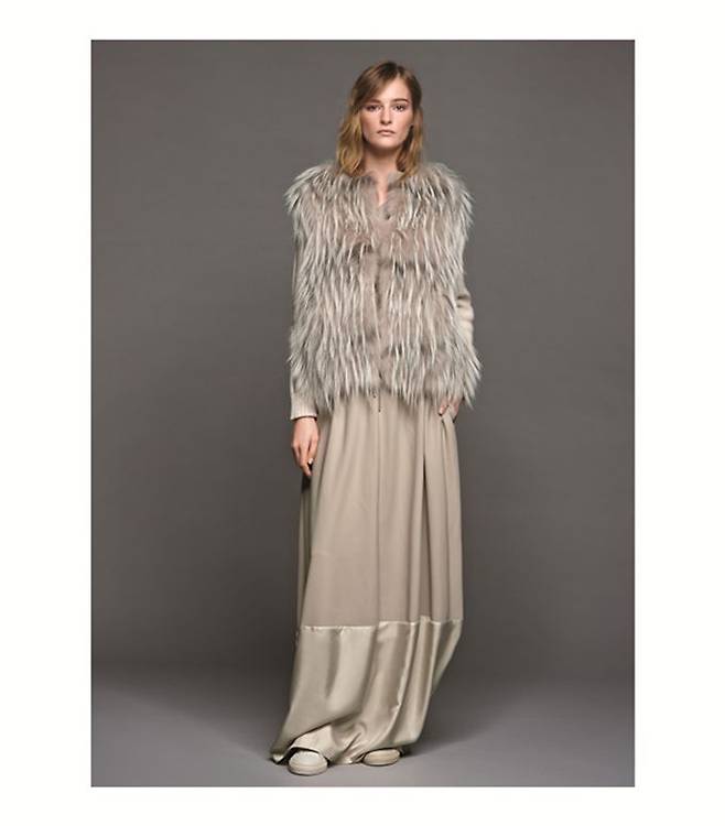 해당 제품은 「파비아나 필리피」 의 풍성한 폭스 퍼가 전면을 감싸는 디테일이 눈에 띄는 니트 가디건으로, 깨끗하면서도 따뜻해 보이는 멋스러운 아이템이다.