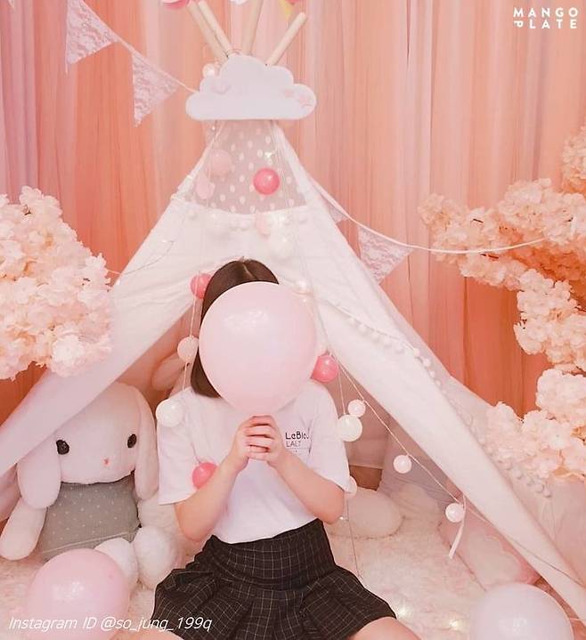 여심 저격할 핑크 핑크 한 공간. 인생 샷 꼭 남기셔야 해요~라고 하는 것처럼 포토존이 마련되어 있는데요! 화관, 꽃다발 등의 소품까지 준비되어 있으니 여자들끼리 꽁냥꽁냥 사진 찍으며 시간 보내기 좋겠네요!