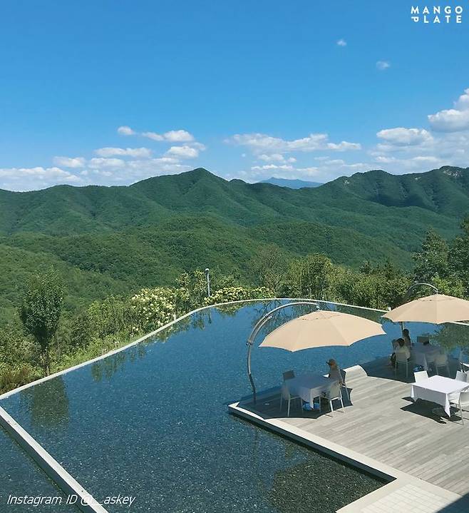 안도 타다오라는 유명 건축가가 지은 원주 뮤지엄산 미술관 내부에 있는 카페. 푸른 하늘과 산, 햇살이 어우러져 만들어낸 반영과 독특한 구조가 인상적인데요! 여유롭게 작품도 관람하고 카페 야외 테라스에서 인생 샷도 남기고!