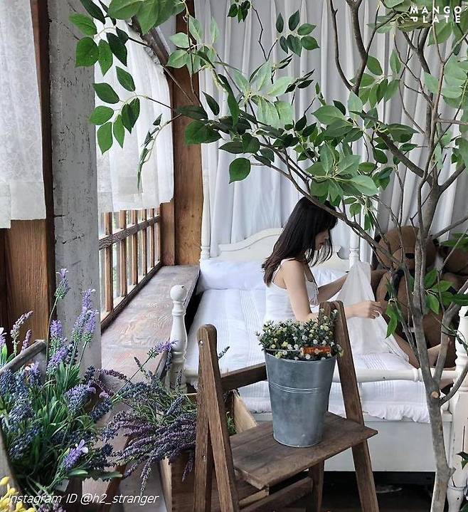 이국적인 외관, 유럽 정원을 연상시키는 내부 인테리어 외에도 야외 포토스팟까지! 주문하면 진동벨 대신 꽃다발을 주셔요! 셀프 웨딩 촬영하기 좋은 분위기로 커플들에게 특히 인기가 많답니다.