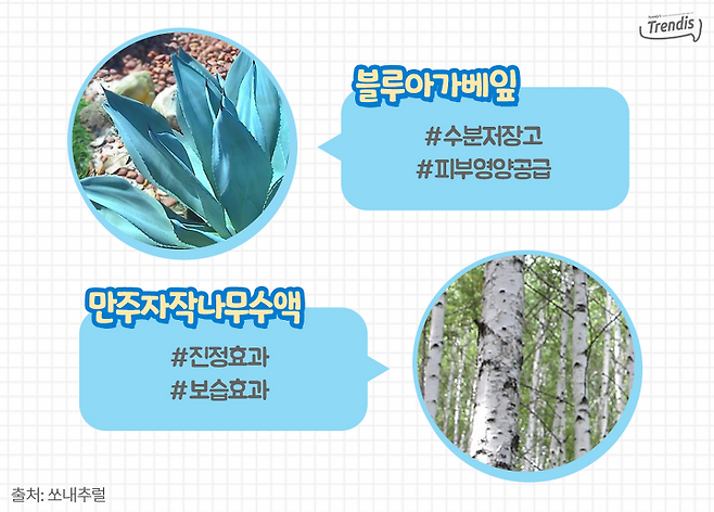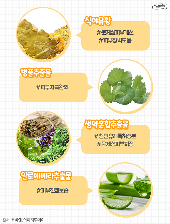 흰버드나무껍질추출물, 편백잎추출물… 등등