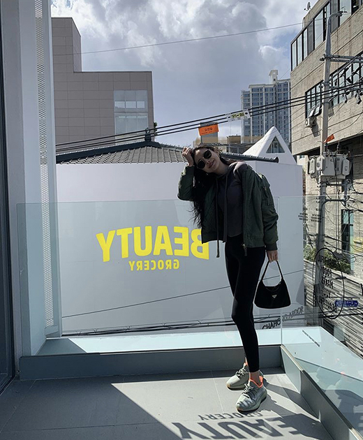 손나은은 일상에서 입는 레깅스 룩을 선보였는데요. 상의로 가벼운 외투를 걸치고, 선글라스를 착용해 시크하면서 스포티한 룩을 완성했습니다.
