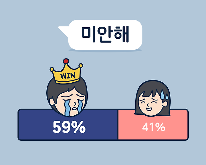 더 많이 사과하는 쪽은 남자였습니다.