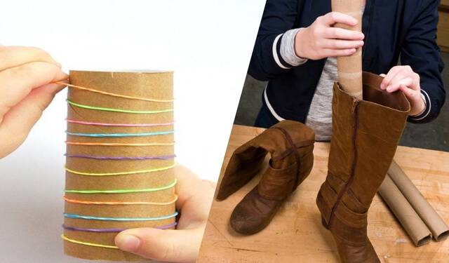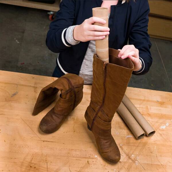 롱부츠는 신었을 때는 멋스럽지만 보관할 때는 여간 까다로운 것이 아니다. 부츠 목 부분이 길고 흐물흐물해 자칫하면 접힌 자국이 남을 수도 있고 지저분해지기도 쉽기 때문. 휴지심 몇 개를 길게 이어 붙이고, 속에 신문지를 채운 뒤 택배박스에 들어있었던 일명 뽁뽁이를 적당한 두께로 둘둘 감아주면 초간단 부츠 키퍼가 완성된다. 부츠의 긴 목이 잘 서 있을 수 있도록 고정해주어 부츠를 깔끔하게 보관할 수 있다.
