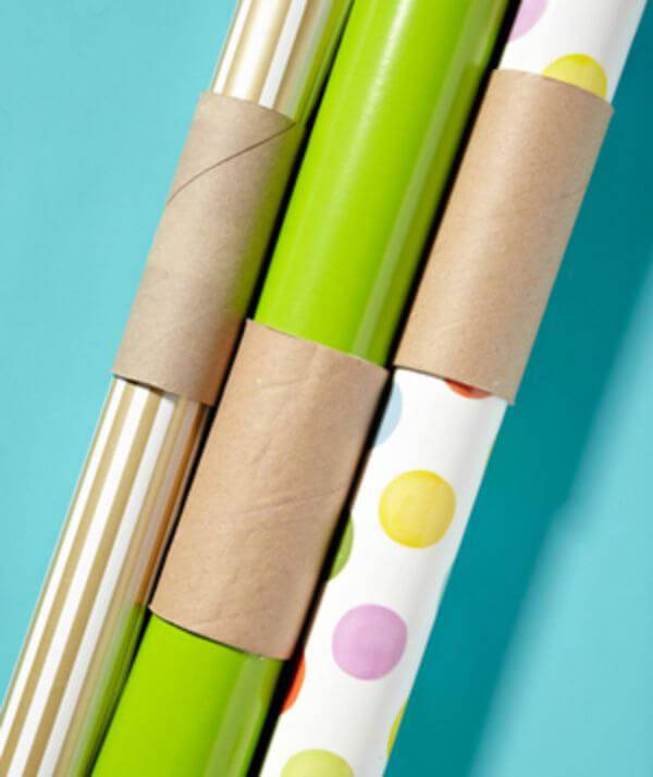 급하게 선물할 일이 있을 때 집에 있는 포장지를 찾아보면 구석에 찌그러져 있어 제대로 사용할 수 없는 상태가 되어있는 경우가 다반사다. 잘 말아놓아도 스르륵 풀려버리거나, 말아서 묶어놓은 끈 자국 때문에 활용도가 떨어지기도 한다. 이럴 때 포장지를 잘 말아 휴지심에 끼워두면 풀리지도 않고, 고정용 끈 자국도 남지 않아 한결 깔끔하게 보관할 수 있다. 여러 개의 포장지를 세워서 보관하기에도 좋다.