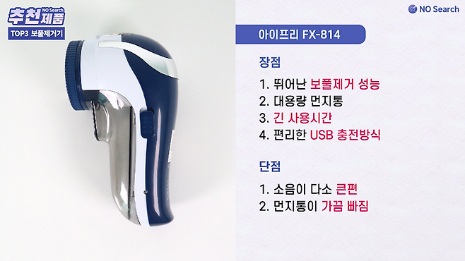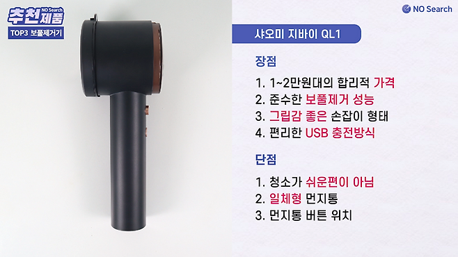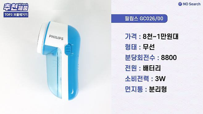 배터리 방식에 보풀제거 성능 자체가 뛰어난 제품은 아니지만 1만원도 안되는 가격이 가장 큰 장점으로 가성비 좋은 제품을 찾는 분들께 추천하는 제품입니다.