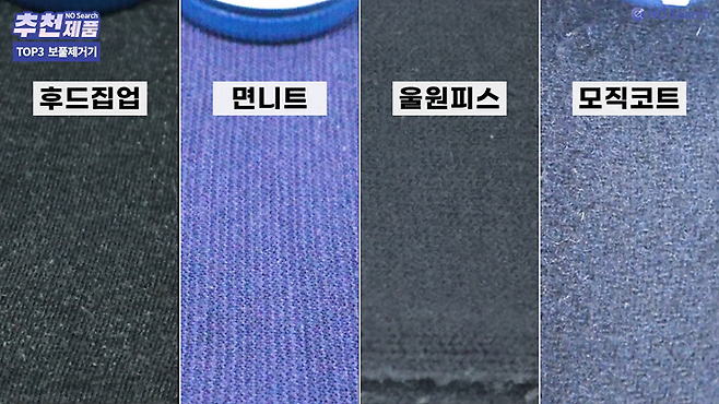 보풀제거 테스트 결과 티셔츠, 니트, 코트 등 대부분의 보풀을 잘 제거하였습니다.