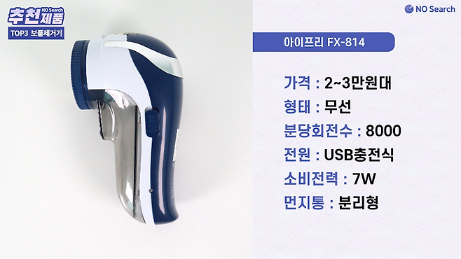 2만원대의 합리적 가격에 보풀제거 성능이 매우 뛰어난 제품으로 고가의 보풀제거기는 부담스럽지만, 가성비 제품 중 보풀제거 성능이 뛰어난 제품을 찾는 분들께 추천하는 모델입니다.